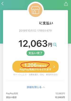 「キャッシュレス消費者還元」で5%還元のお店だけでした。