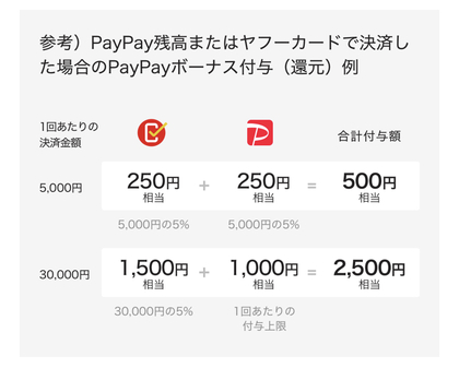 PayPayからは通常ポイント1.5%がボーナスポイント5%になって、