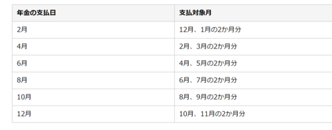 それぞれの支払月には、その前月までの2か月分の年金が支払われます。